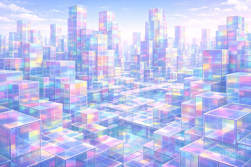 キーワード キューブワールド, キューブ, ワールド, アクリル, 透明, 透け, 立体, 立方体, , 未来, 近未来, 都会, 都市, , ビル, デジタル, 不思議, cube, box, digital, future, city, building,